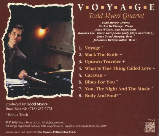 Todd Myers Quartet: Voyage MUSIC AUDIO CD modern jazz saxophone band 1993 Buzz
