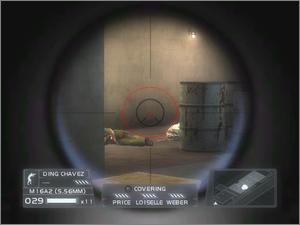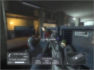An Xbox exclusive for 2003, Tom Clancy's Rainbow Six 3 continues the squad-based shooter series with 14 new single-player missions, nine multiplayer maps, and over 30 weapons. Instead of porting the PC's Raven Shield, the developers at Ubi Soft Montreal opted instead to create an original release designed specifically for the console. Players control Team RAINBOW's Ding Chavez throughout the entire solo campaign, commanding fellow agents Louis Loiselle, Dieter Weber, and Eddie Price. Players will issue orders to teammates, such as tossing a flash grenade into a room after opening a door, using the directional pad. The available list of commands varies depending on the situation at hand.
