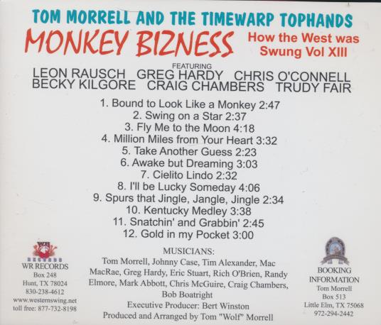 Tom Morrell And The Timewarp Tophands: Monkey Bizness MUSIC CD country western!