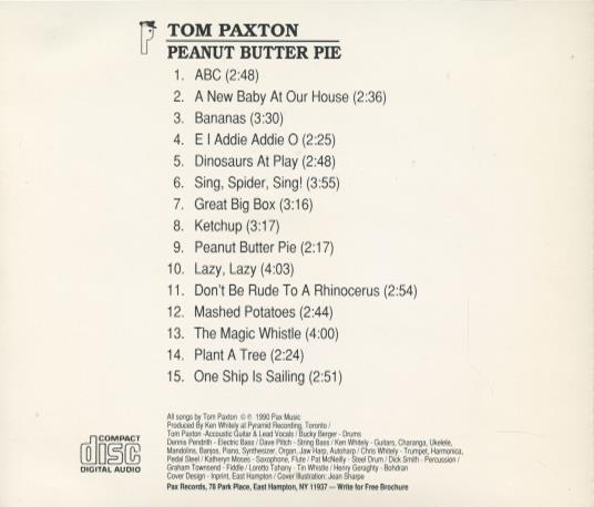 Tom Paxton: Peanut Butter Pie MUSIC AUDIO CD children's folk! SIGNED AUTOGRAPH