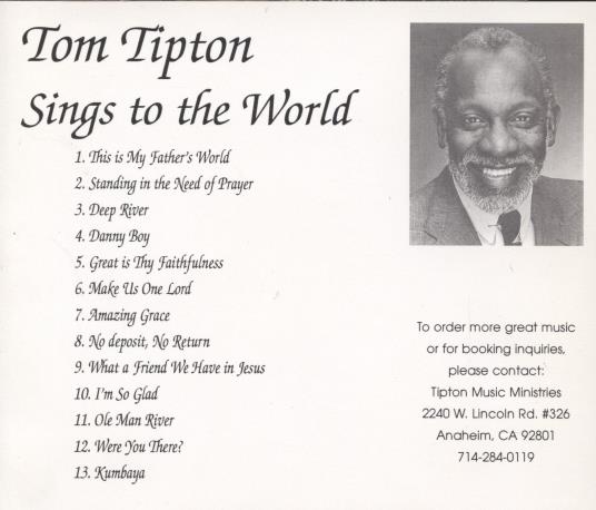 Tom Tipton: Sings To The World MUSIC AUDIO CD funk soul gospel worship praise!