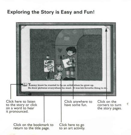 The book and activities can be accessed with a mouse, KidPoint or a touch screen; however, straight lines are difficult to make when using a touch screen.