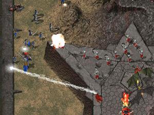 The interface is almost entirely mouse driven with some keyboard shortcuts available. Gameplay includes features such as fog of war, where units can only "see" units and structures within their line of sight, darkened maps that are revealed slowly as units explore territories and battle maps shown in overhead 3D perspective. Other game components include a system of unit advancement that relies on experience, divergent units postured with offensive, defensive or passive proclivities, dynamic mana generation and a large contingent of more than 50 monsters and non-playing characters.
