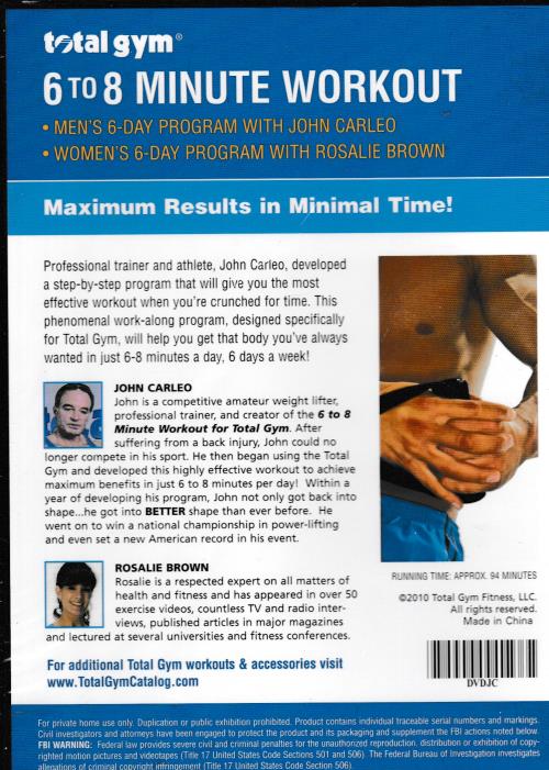 Total Gym: 6 To 8 Minute Workout DVD VIDEO FITNESS Mens & Womens Program SEALED