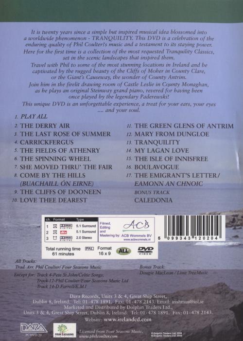 FILMED ENTIRELY ON LOCATION IN IRELAND. It is twenty years since a simple but inspired musical idea blossomed into a worldwide phenomenon - TRANQUILITY. This DVD is a celebration of the enduring quality of Phil Coulter's music and a testament to its staying power.