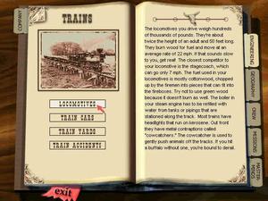 The final task is to capture all six of the outlaws, interrogate them using a truth-meter to help separate the truth from the misleading information they'll try to confuse you with and ferret out the identity of the mastermind behind the dastardly plot. Throughout the adventure, you'll be joined by Jack and his sister Sarah as you discover and explore frontier towns, meet Native Americans, view majestic canyons, deal with natural disasters, visit workers' camps and even take the controls of your own locomotive!