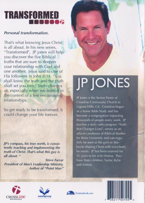 Personal transformation. That's what knowing Jesus Christ' is all about. In his new series, "Transformed", JP Ones will help you discover the five Biblical truths that are sure to deepen your relationship with God and " one another. Jesus said to one of His followers in John 8:31, "You shall know the truth and the truth shall set you free." Truth changes us, especially when we learn it in the context of a few encouraging relationships. So get ready to be transformed. It could change your life forever. JP's compass, his true north, is consis-tently teaching and implementing the truth of Christ. That's what this guy is all about. "