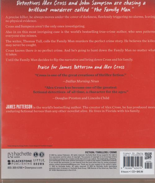 Cross and Sampson aren't the only ones investigating. Also involved in this intriguing case is the world's bestselling true‑crime author, who sees patterns everyone else misses. The writer, Thomas Tull, calls the Family Man murders the perfect crime — and he's going to hunt down the Family Man no matter what it takes. Until the Family Man decides to flip the narrative and bring down Cross and his family.