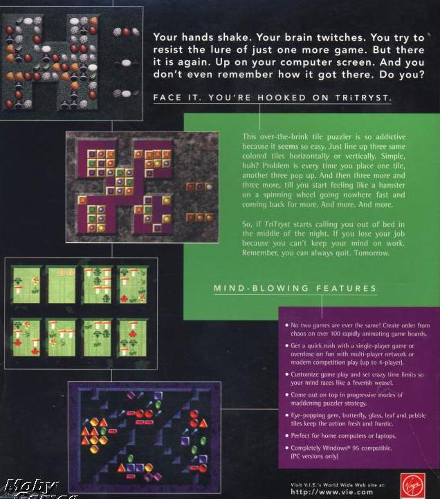 TriTryst PC CD blocks & columns puzzle color marbles empty field row board game!