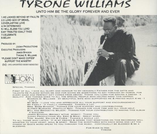 TYRONE WILLIAMS: UNTO HIM BE THE GLORY FOREVER AND EVER W/ BACK ARTWORK