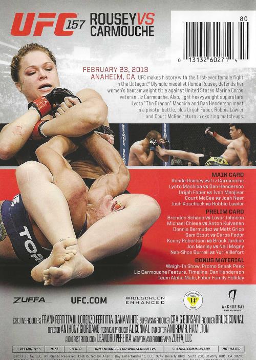 157 ROUSEYVS Aim CARMOUCHE 80 0 3132 60271 4 ULTIMATE 2-DISC COLLECI iLL WOMEN'S WORLD BANTAMWEIGHT CHAMPIONSHIP KitsIG HISTORY FEBRUARY 23,2013 ANAHEIM, CA