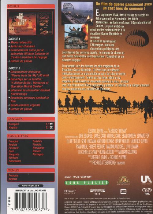 Un Pont Trop Loin Collector's 2-Disc PAL DVD VIDEO MOVIE war heroes 1999 FRENCH