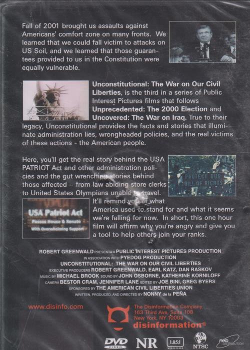 Unconstitutional The War On Our Civil Liberties DVD VIDEO DOCUMENTARY NEW SEALED