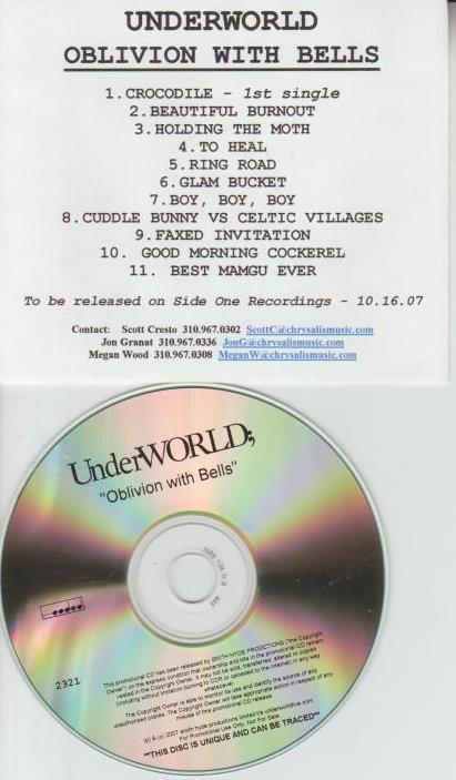 Underworld: Oblivion With Bells PROMO MUSIC AUDIO CD house electronic techno