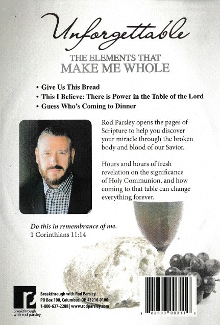 • Give Us This Bread • This I Believe: There is Power in the Table of the Lord • Guess Who's Coming to Dinner Rod Parsley opens the pages of Scripture to help you discover your miracle through the broken body and blood of our Savior. Hours and hours of fresh revelation on the significance of Holy Communion, and how coming to that table can change everything forever. Do this in remembrance of me. 1 Corinthians 11:14