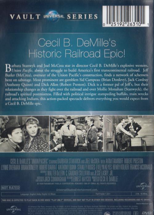 Union Pacific DVD VIDEO MOVIE classic western railroad epic Barbara Stanwyck '39