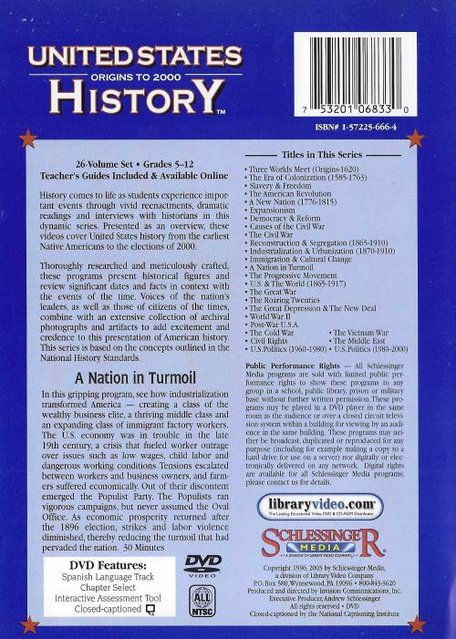United States History: Origins To 2000: A Nation In Turmoil DVD VIDEO economy