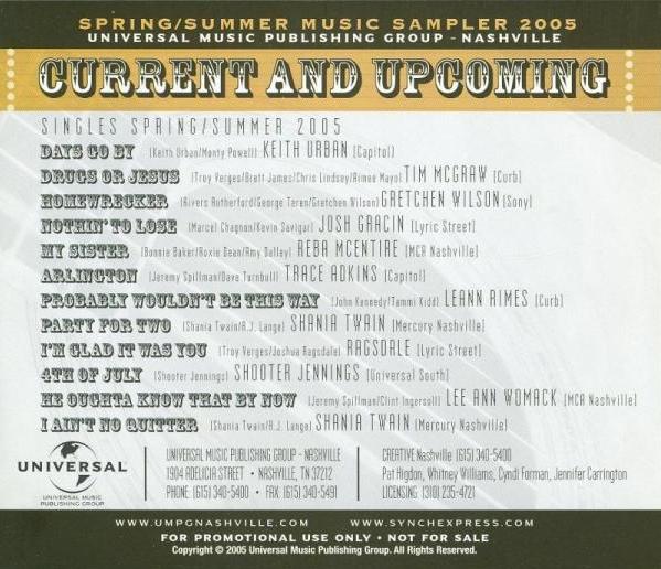 Universal Music Publishing Group Nashville: Current & Upcoming Singles Spring/Summer 2005 Promo w/ Artwork