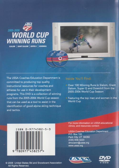 The USSA Coaches Education Department is committed to producing top-quality instructional resources for coaches and athletes. This DVD collects winning runs from the 2005-2006 World Cup season and can be used as a tool to help identify and analyze effective alpine skiing technique and tactics.