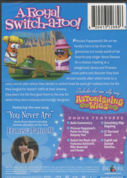 Princess Poppyseed's life on her family s farm is far from the glamorous world of her favorite pop singer Vanna Banana. While Princess milks the cows and dreams of a life on stage, Vanna has her own dreams of a life far from the hectic pace of stardom. On a chance meeting Vanna & Princess cross paths and realize they look almost exactly alike which leads to the crazy notion that maybe they could switch lives! In a flash the girls secret plan is launched but as Princess tries to live up to the demands of being a diva and Vanna learns how to milk the cows each girl realizes that the life they longed for doesn t fulfill all their dreams after all and the life God gave them is the one for which they were uniquely and lovingly designed.