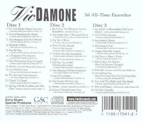Vic Damone: 36 All-Time Favorites 3-Disc Set w/ Artwork