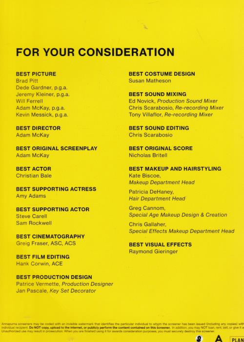 Vice FYC BLU-RAY VIDEO MOVIE Christian Bale biographical drama Dick Cheney film
