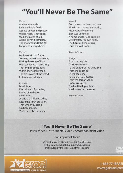 Visit Israel You'll Never Be The Same DVD VIDEO MUSIC instrumental accompaniment