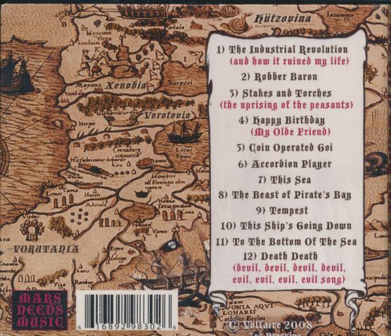 Voltaire (AURELIO VOLTAIRE HERNANDEZ) is a singer-songwriter and performer known for his dark cabaret style and theatrical storytelling. His music blends folk influences with gothic and cabaret sensibilities, often featuring wry humor and vivid narrative lyrics. This album continues his penchant for vivid, thematic songs, exploring nautical and seafaring imagery. The arrangements are intimate and evocative, pairing melodic songwriting with dramatic flair.