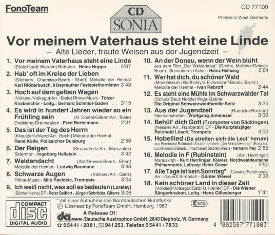 Vor Meinem Vaterhaus Steht Eine Linde MUSIC AUDIO CD Germany folk! 1989 Sonia