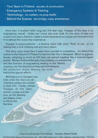 • Two Years in Finland: secrets of construction • Emergency Systems & Training • Technology: no rudders, no prop shafts • Behind the Scenes: the bridge, crew, entertainers Voyager of the