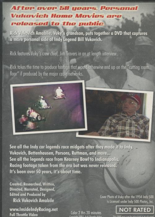 Vukovich Home Racing Movies, Etc. Vol. 1 DVD VIDEO DOCUMENTARY SIGNED AUTOGRAPH