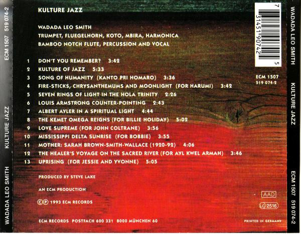 Wadada Leo Smith: Kulture Jazz MUSIC AUDIO CD free jazz 1993 ECM Records Germany