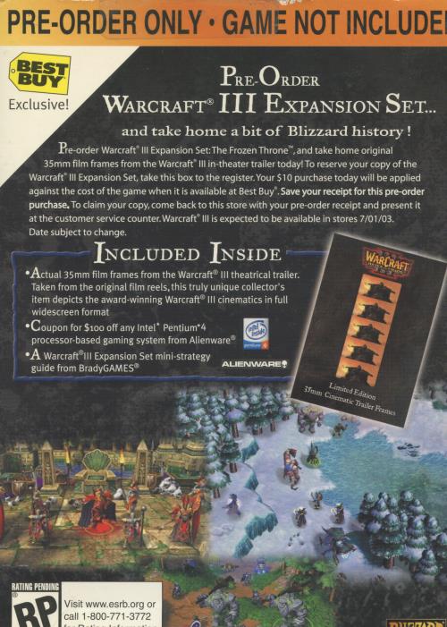 WarCraft III 3 The Frozen Throne Expansion Pre-Order Limited Edition