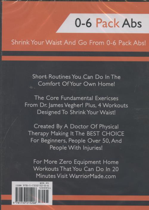 0-6 Pack Abs ShrinkYour Waist And Go From 0-6 Pack Abs! Short Routines You Can Do In The Comfort Of Your Own Home! The Core Fundamental Exericses From Dr. James Vegher! Plus, 4 Workouts Designed To Shrink Your Waist! Created By A Doctor Of Physical Therapy Making It The BEST CHOICE For Beginners, People Over 50, And People With Injuries!