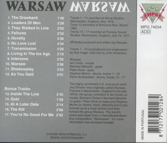 Warsaw: Self-Titled MUSIC AUDIO CD new wave punk rock band 1994 PG Gold Portugal