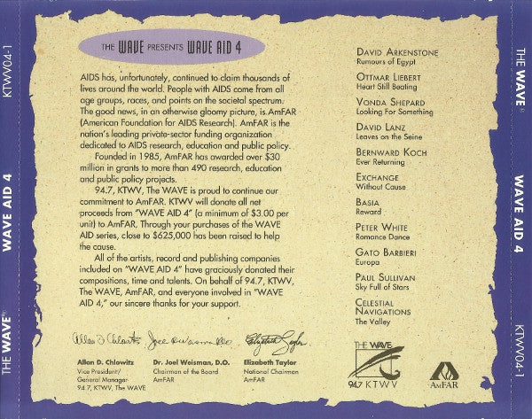 Wave Aid 4 MUSIC AUDIO CD smooth jazz compilation 1990 The Wave 94.7 Arkenstone