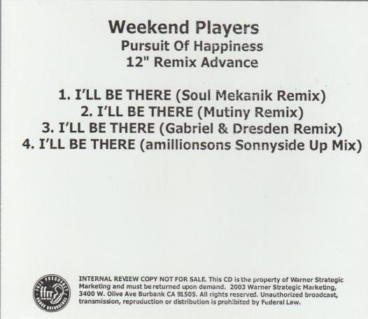 Weekend Players: Pursuit Of Happiness: 12" Remix Advance PROMO MUSIC AUDIO CD