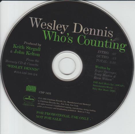 Wesley Dennis Who's Coming PROMO MUSIC AUDIO CD CDP 1431 country 3 track Stegall