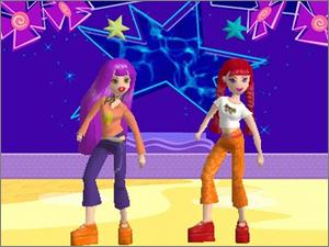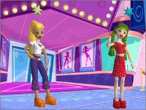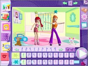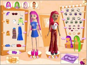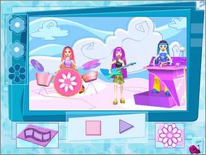 What's Her Face! CD-ROM lets players create TV episodes using characters from the Ultimate Adventures animated series. Selectable characters Glam, Hip, Cool and Sweet are more than just character names -- they add their vibe to the production of scenes using any of 16 possible episodic themes. Before the adventures begin, players prepare for the episode's "shooting" by determining a title, choosing one of many backgrounds such as a jungle, disco, or beach (among others), selecting from a large array of props, modifying characters' skin tone, wardrobe, hair, accessories, makeup and more, and directing the movie-making.