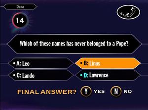 Witness the full Who Wants to be a Millionaire experience by inviting a couple friends over. When multiple players are involved, the Fastest Finger round becomes available. Winning this round involves coming up with the correct answers in the shortest amount of time. Questions typically deal with putting an event or timeline together in the correct order. Whoever wins moves on to the hot seat and earns a chance to win virtual bucks.