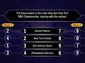 Unlike the television show and previous releases, all of the questions in this version of the game are sports-related, concerning game rules, history, and celebrity athletes. As the game session progresses, questions become more difficult and more valuable. Players risk all of their current winnings to try to correctly answer the next question. Of course, as in any decent interpretation of the hugely popular game show, there are three lifelines available when players can't quite come up with the right answer on their own.