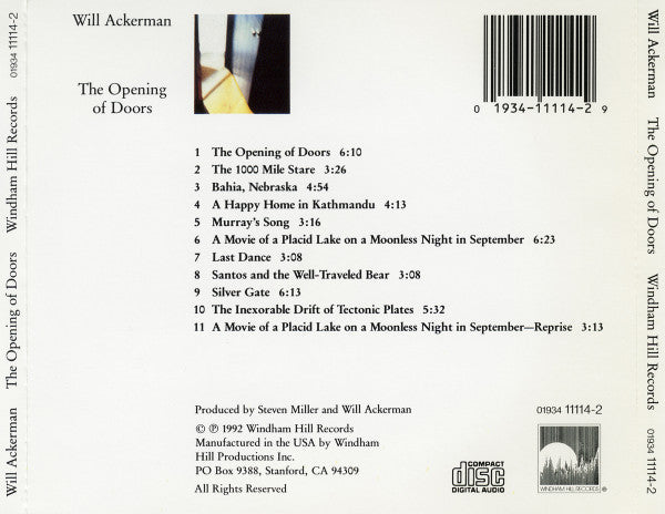 William Ackerman: The Opening Of Doors MUSIC AUDIO CD country folk 1992 SEALED