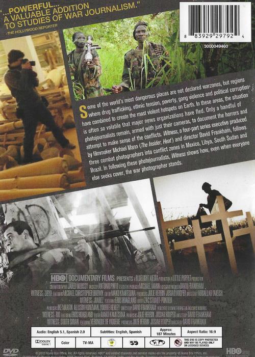 Some of the world's most. dangerous places me not declared weaves, but regions where drug trafficlug, ethnic ter6on, poverty, gang violence and political cenrupton. have combined to create the most violent hotspots on Earth. In these areas, the sduabon Is often so volatile that major news organizations have fled. Only the of photojournalists rendn, armed With just theY cameras, to document the horrors and attempt to make sense of the onfbts. Witness, a tour-part series executve produced filmmaker Michael garm (The Insider, Heat) and director David Frankhom, follows three combat photographers into conflict zones in tiley;lco, Libya, South Sudan and Braid. In following these photojournaVists, VVimess shows how, even when everyone by else seeks cover, the war photographer stands, JUAREZ LIBYA SOUTH SUDAN