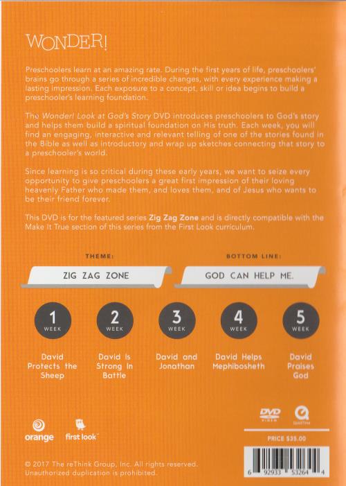 Preschoolers learn at an amazing rate. During the first years of life, preschoolers’ brains go through a series of incredible changes, with every experience making a lasting impression. Each exposure to a concept, skill, or idea begins to build a preschooler’s learning foundation.The Wonder! Look at God’s Story DVD introduces preschoolers to God’s story and helps them build a spiritual foundation on His truth. Each week, you will find an engaging, interactive and relevant telling of one of the stories found in the Bible as well as introductory and wrap up sketches connecting that story to a preschooler’s world. Since learning is so critical during these early years, we want to seize every opportunity to give preschoolers a great first impression of their loving heavenly Father who made them, and loves them, and of Jesus who wants to be their friend forever.