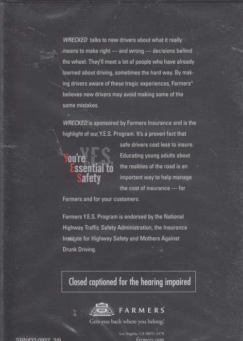 WRECKED is sponsored by Farmers Insurance and is the highlight of our Y.E.S. Program. It's a proven fact that safe drivers cost less to insure. Educating young adults about the realities of the road is an important way to help manage the cost of insurance — for Farmers and for your customers.