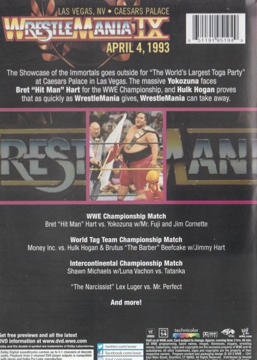 WrestleMania IX DVD VIDEO SPORTS wrestling WWE Hulk Hogan Bret Hart 1993 Caesars