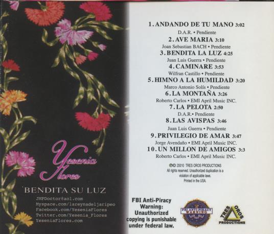Yesenia Flores: Bendita Su Lutz SIGNED BACK OF FRONT COVER!