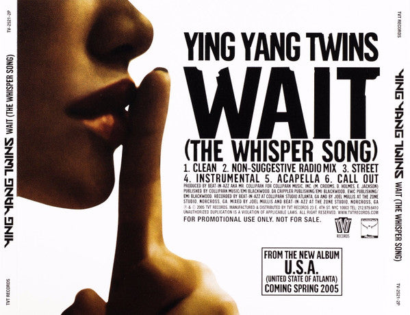 Ying Yang Twins: Wait (The Whisper Song) Promo w/ Back Artwork