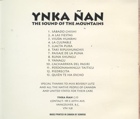 Ynka Nan: The Sound Of The Mountains MUSIC AUDIO CD world folk native flute song