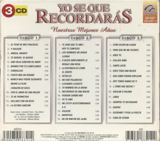 Yo Se Que Recordaras: Nuestros Mejores Anos 3-Disc Set